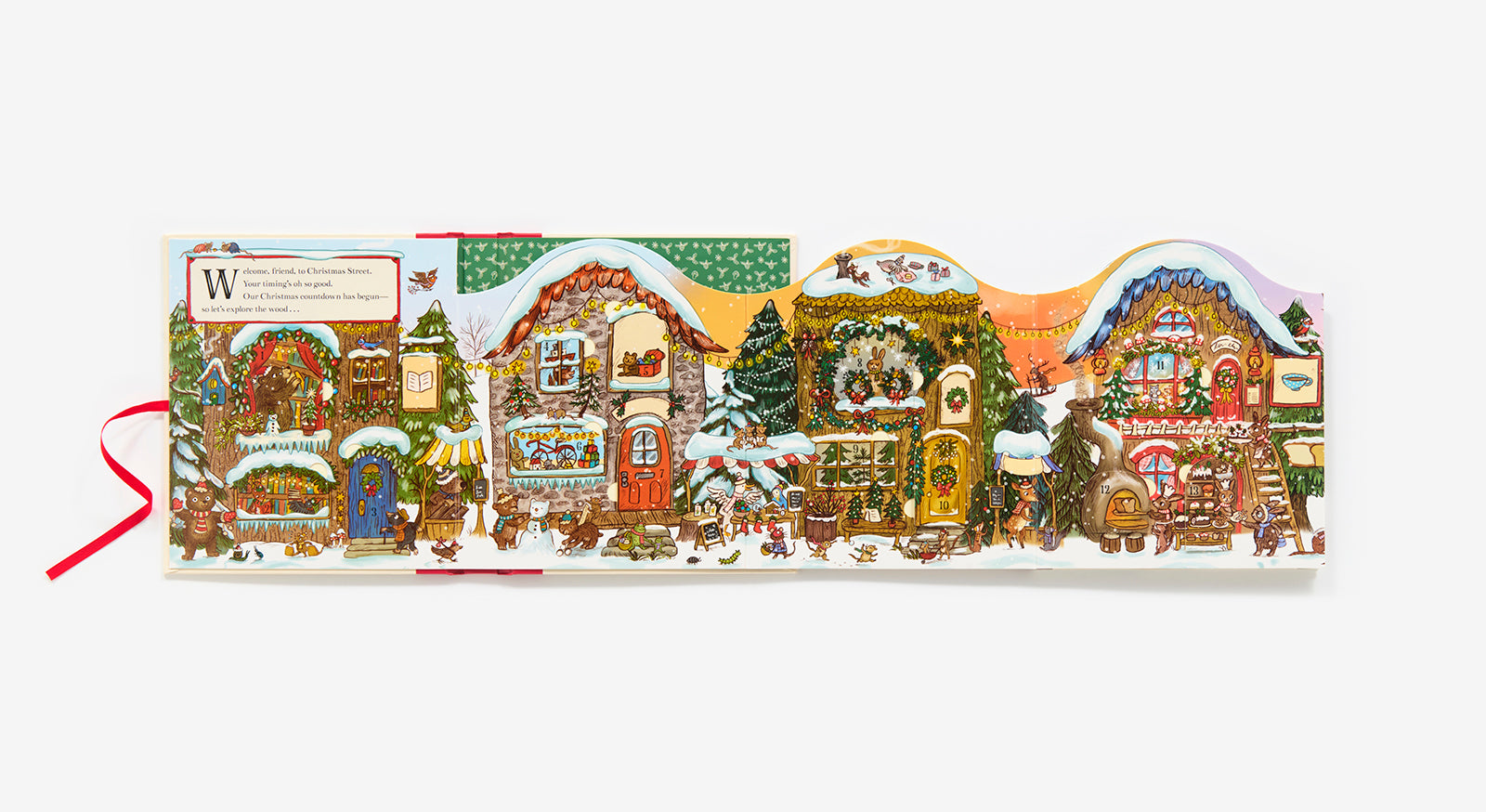Count down to Christmas with Bear and his woodland friends in this spectacular advent calendar book—with surprises hidden under 24 doors, holiday activities to enjoy as a family, and a magical accordion-style fold-out to display