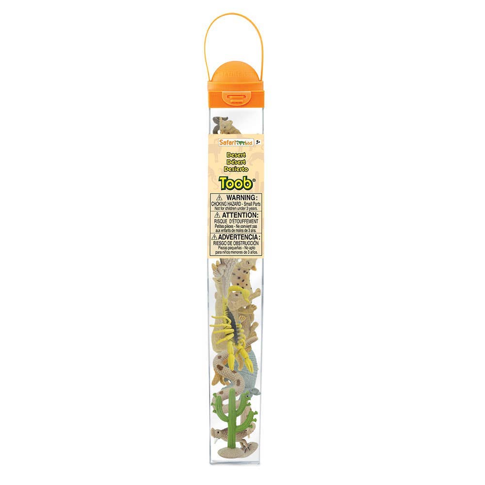 Although many deserts are scorching hot and lack rainfall, these forms of wildlife manage to live there. This toob contains a horned lizard, budding saguaro cactus, road runner, scorpion, rattlesnake, coyote, big horn ram, bobcat, armadillo, mountain lion and prairie dog. History: Because deserts are so challenging to live in for both animals and plant life, species that live in the desert need special adaptations to survive. Plants, like the cactus found in this toob, are often very tough with little to no leaves and have deep root systems. Characteristics: individually hand painted and professionally sculpted for true to life accuracy, these figurines are excellent for imaginative play, educational purposes, or as additions to a diorama or collection. Size: 1.5 inches long, 1.5 inches wide, and 12.8 inches tall, this toob is a bit larger than the size of a standard American ruler and contains 11 figurines that range from 1.25 to 3.75 inches tall.