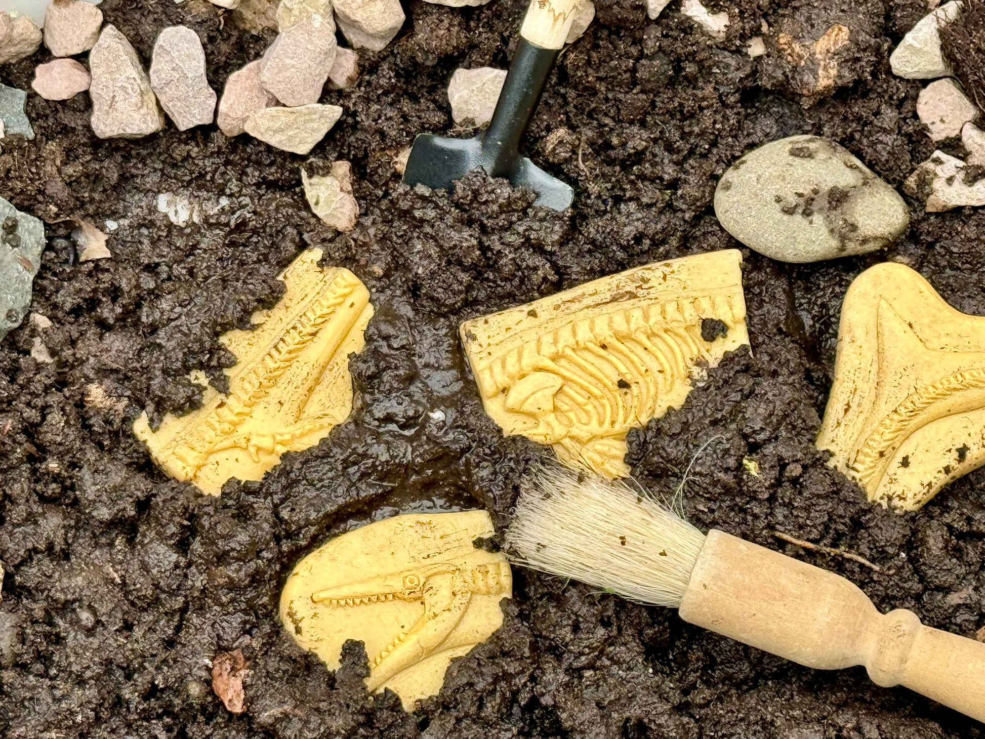 Dive into the fascinating prehistoric world with this exciting fossil set featuring two remarkable creatures. Children will love unearthing these chunky pieces from sand or soil and assembling the skeletons. Made from a durable stone mix, these tactile puzzles will captivate children, while helping to develop spatial awareness, critical thinking and observation skills.