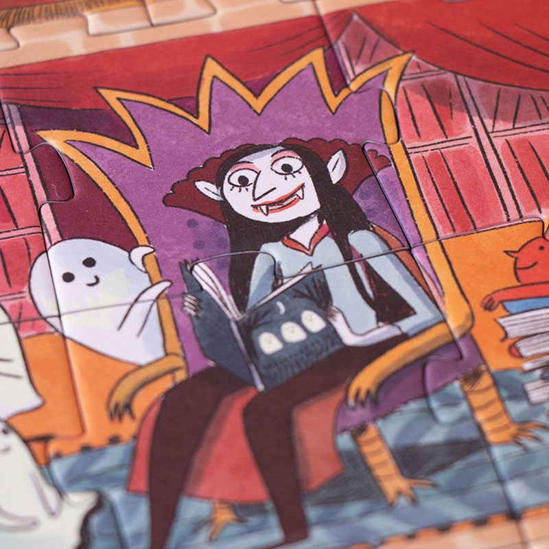 A 100-piece reversible glow-in-the-dark puzzle of monsters and ghosts. A sustainable toy about fears made in Barcelona.