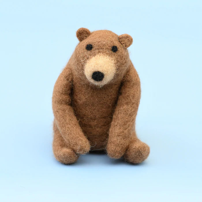 This adorable felt bear toy fits into the cave of the bear hunt play mat.