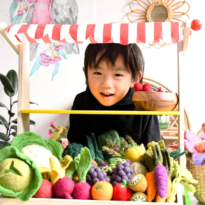 This felt purple carrot has been meticulously needle-felted with wool and has been dyed with non-toxic colours, making it safe for young children.