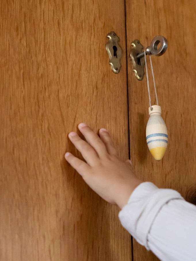 3 lamp-shaped pieces, painted by hand. Includes thread for hanging.