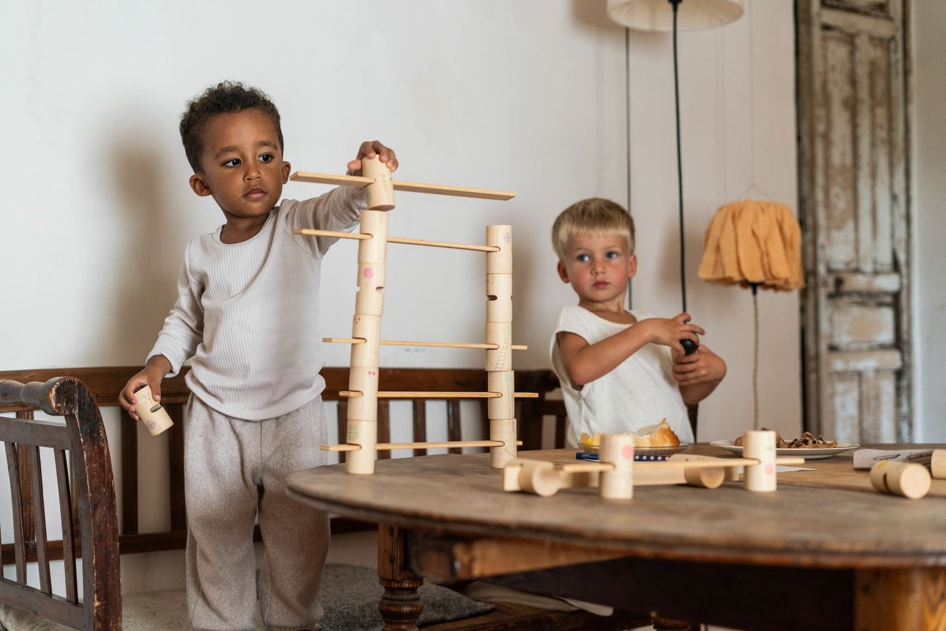 Our endless-play construction set! Build a cozy house in the forest, create a world of your own in a faraway land, or design something completely new. With these beautifully hand-painted wooden blocks and platforms, the possibilities are limitless!