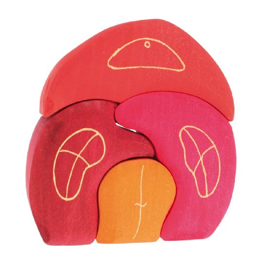 Grimm's building blocks open new possibilities in building and creating. Gnome House design includes 4 pieces. Measures approx 12cm tall