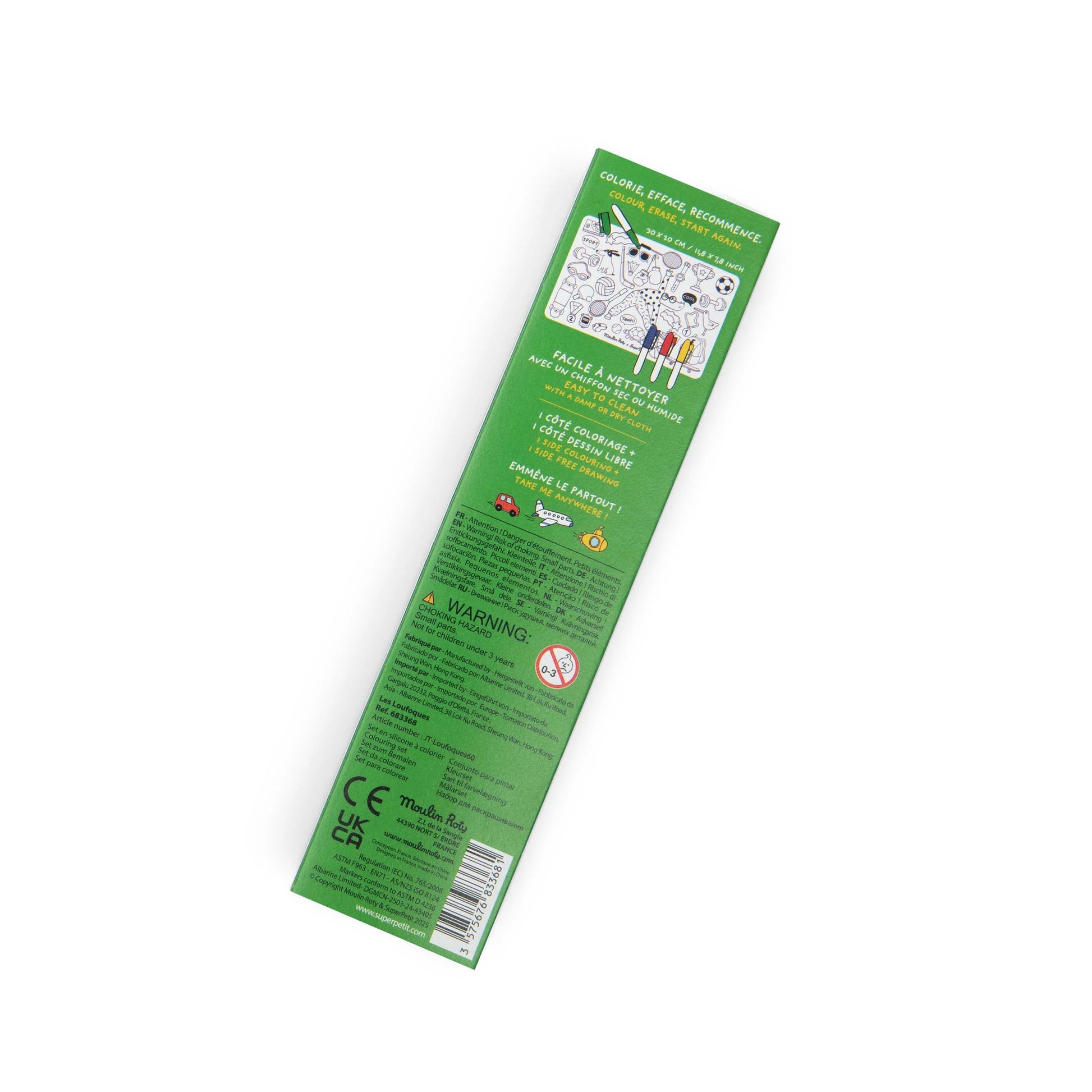 Get ready for creative fun anytime, anywhere with this Mini Silicone Colouring Mat from the whimsical Les Loufoques collection! One side features a playful illustration to colour in, while the other is blank for open-ended doodling. The set includes 4 erasable felt pens and is perfectly sized for little hands. Colour, wipe, and start again—endless fun that’s compact, mess-free, and ideal for travel or quiet time.