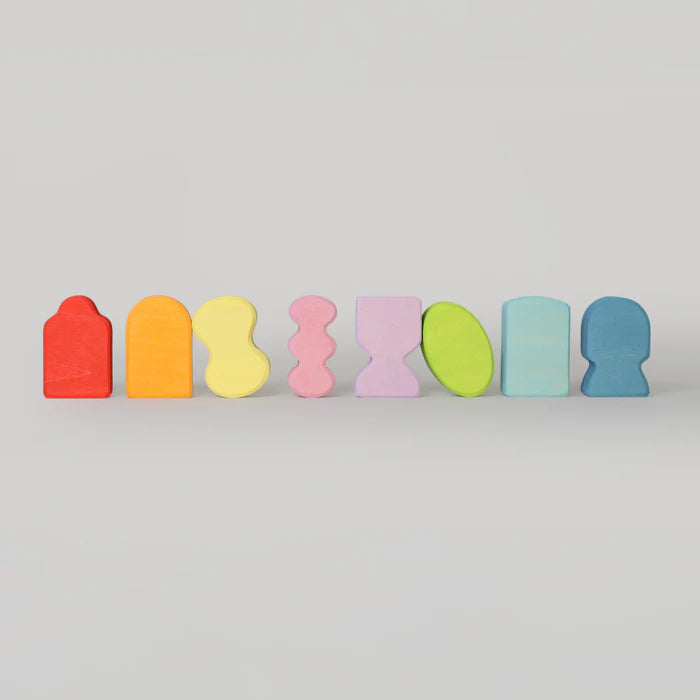 Windows give us a view of the world. Our windows in various colours and shapes are essential building elements for all types of buildings. They bring light into dark rooms and enliven monotonous facades. The Building Set is a first shape puzzle to introduce young children to matching shapes and colour harmonies. Wood: lime wood, colour glazedFrame: 18.6 x 26.6 cmBuilding blocks: 2 cm thick