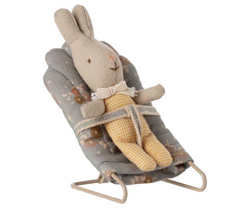 With this babysitter, it is easy to put your little friends to sleep. The base is made of metal and covered by the most lovely fabric. The chair fits my sized rabbits/bunnies and baby mice perfectly.
