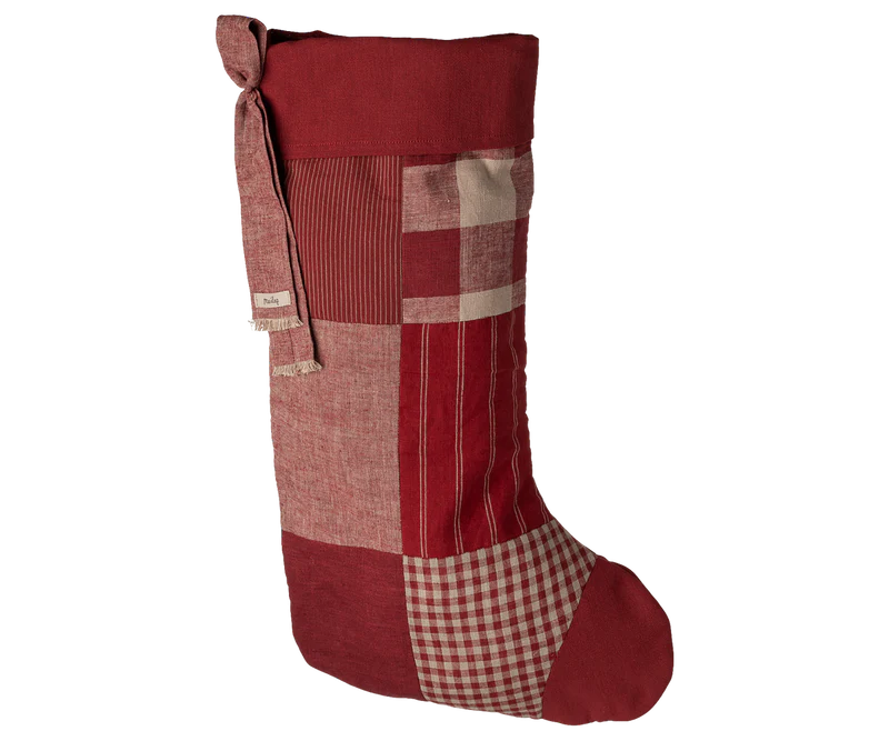 Find the perfect spot in your home to hang this beautiful Christmas stocking made in a beautiful mosaic of different fabrics in the colors of Christmas. Let Santa visit during December with small surprises to make a magical Christmas atmosphere.