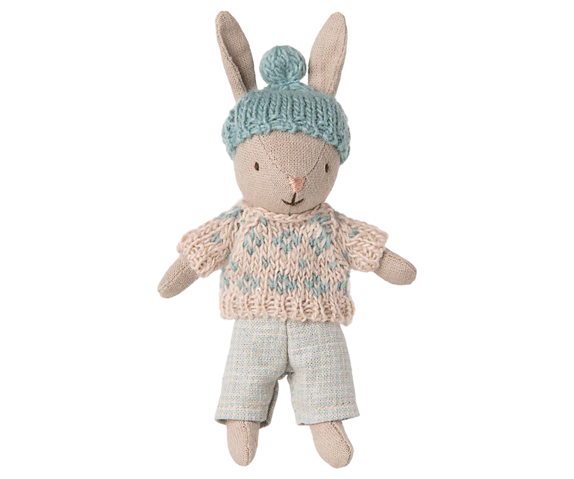 Let the storytelling and hours of play begin with this soft rabbit. It fits Maileg accessories in size micro perfectly and can live in the House of miniature dollhouse. This rabbit size is also perfect on the go so you can bring the magic everywhere.