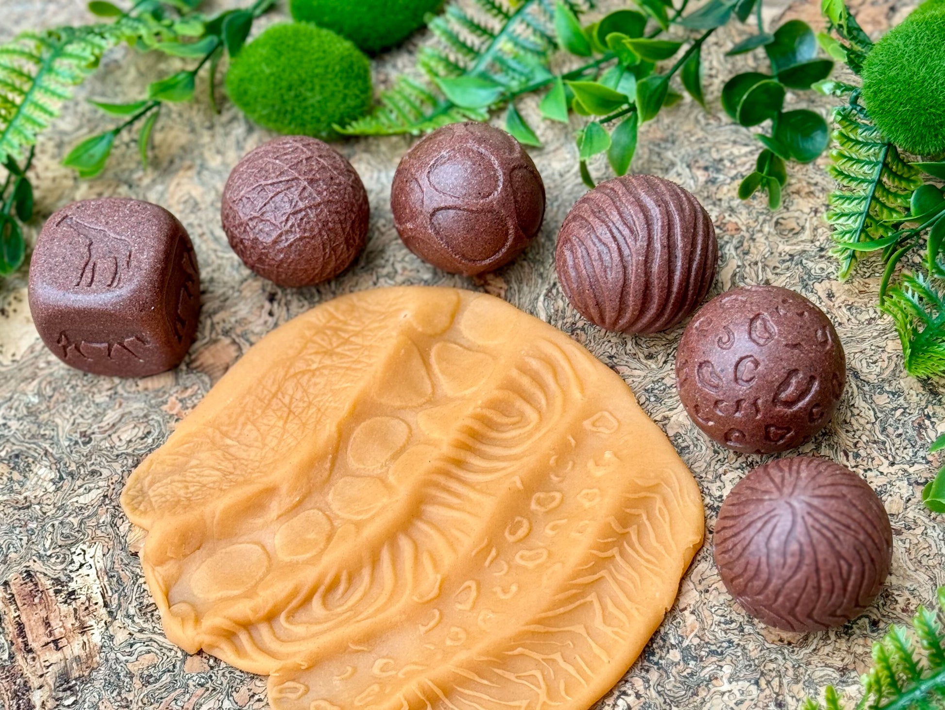 Made from a durable stone mix, the rollers and stamper are ideal for indoor and outdoor play, and easily washable after every wild adventure!