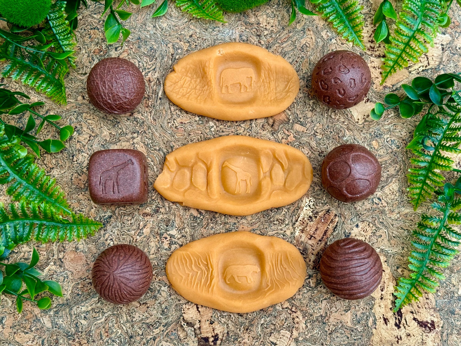 Take a walk on the wild side with this intriguing set of rollers featuring iconic wild animals: giraffe, zebra, tiger, leopard, and elephant. Perfect for interactive ‘Who am I?’ activities, children will enjoy creating tactile patterns in playdough, and stamping to identify the animal owner!