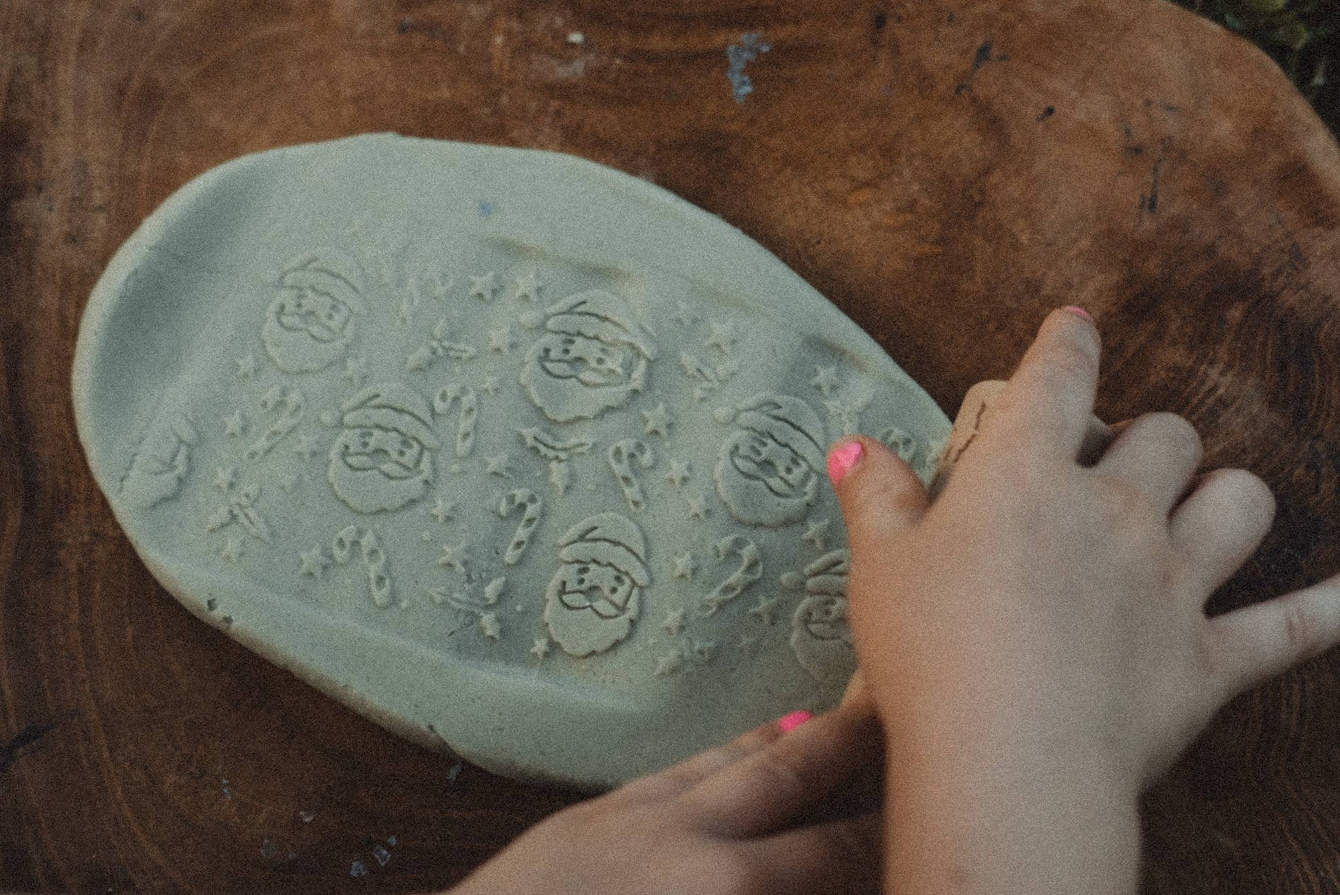 Bring extra holiday cheer to your playdough creations with our Santa Christmas Roller. Featuring a delightful repeating pattern of Santa faces, candy canes, and stars, this roller makes it easy to create magical impressions in dough or clay. Perfect for Christmas crafts or sensory play, it’s a fun and simple way to add seasonal sparkle.