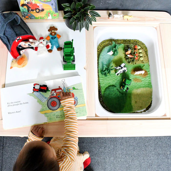 Create the perfect backdrop to an invitation to play, our felt playscapes work well with small animals. Designed by a mum to contain mess, our play mats also fits into an Ikea 'trofast' box and 'flisat' table.