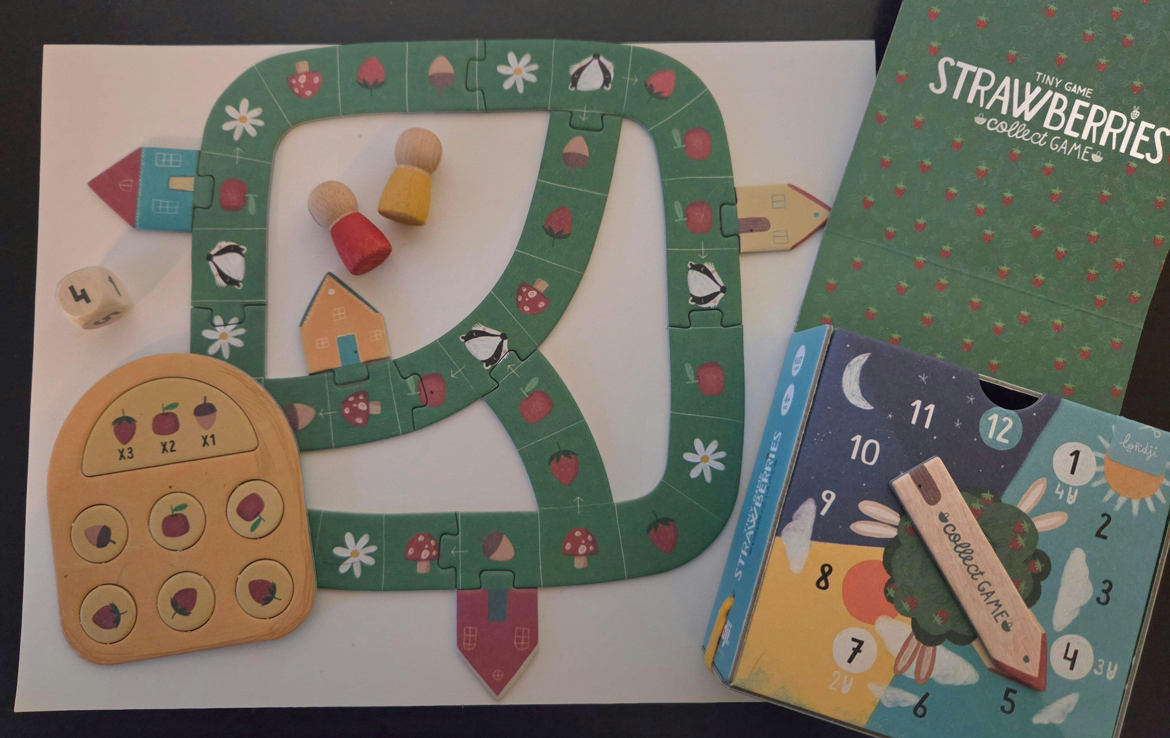 In a quiet corner of the forest, rabbits gather fruit before night falls. But beware! A clever badger is lurking to steal their food. Strawberries is a strategy game: fill your basket before anyone else!