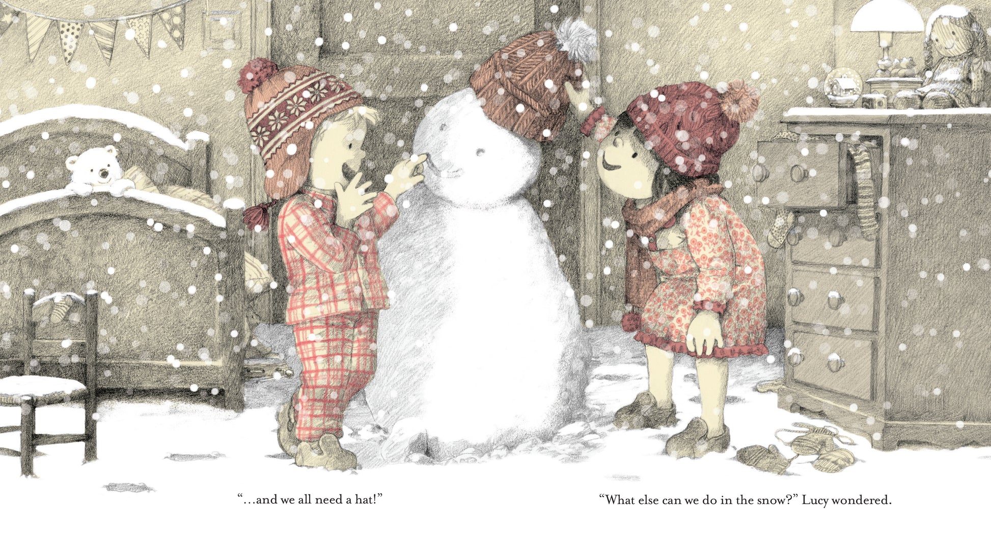 This charming picture book about festive excitement imagines a very special Christmas Eve where Lucy and Noah build a snowman in their bedroom, sledge down the stairs and fling snowballs over the sofa.
