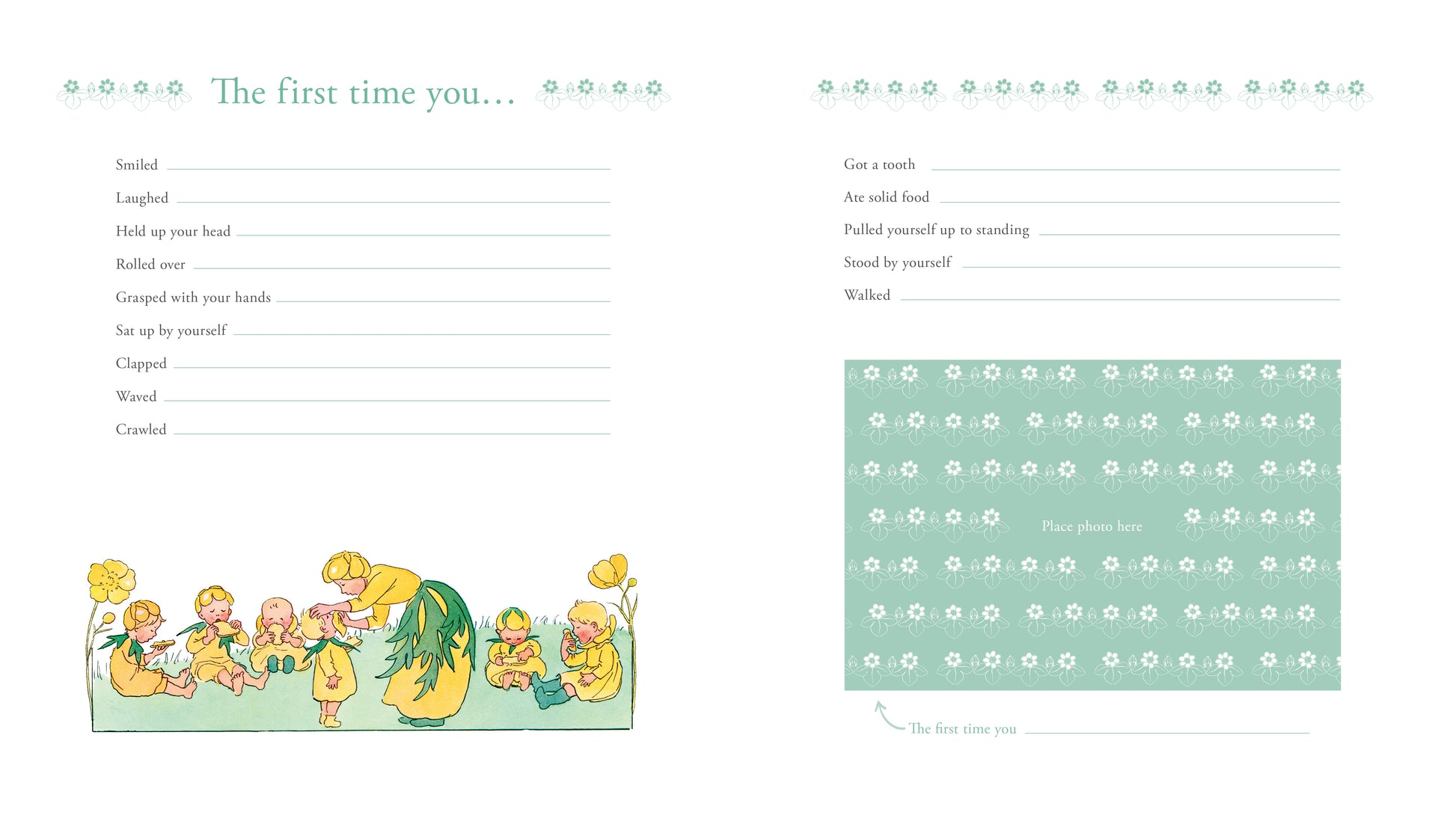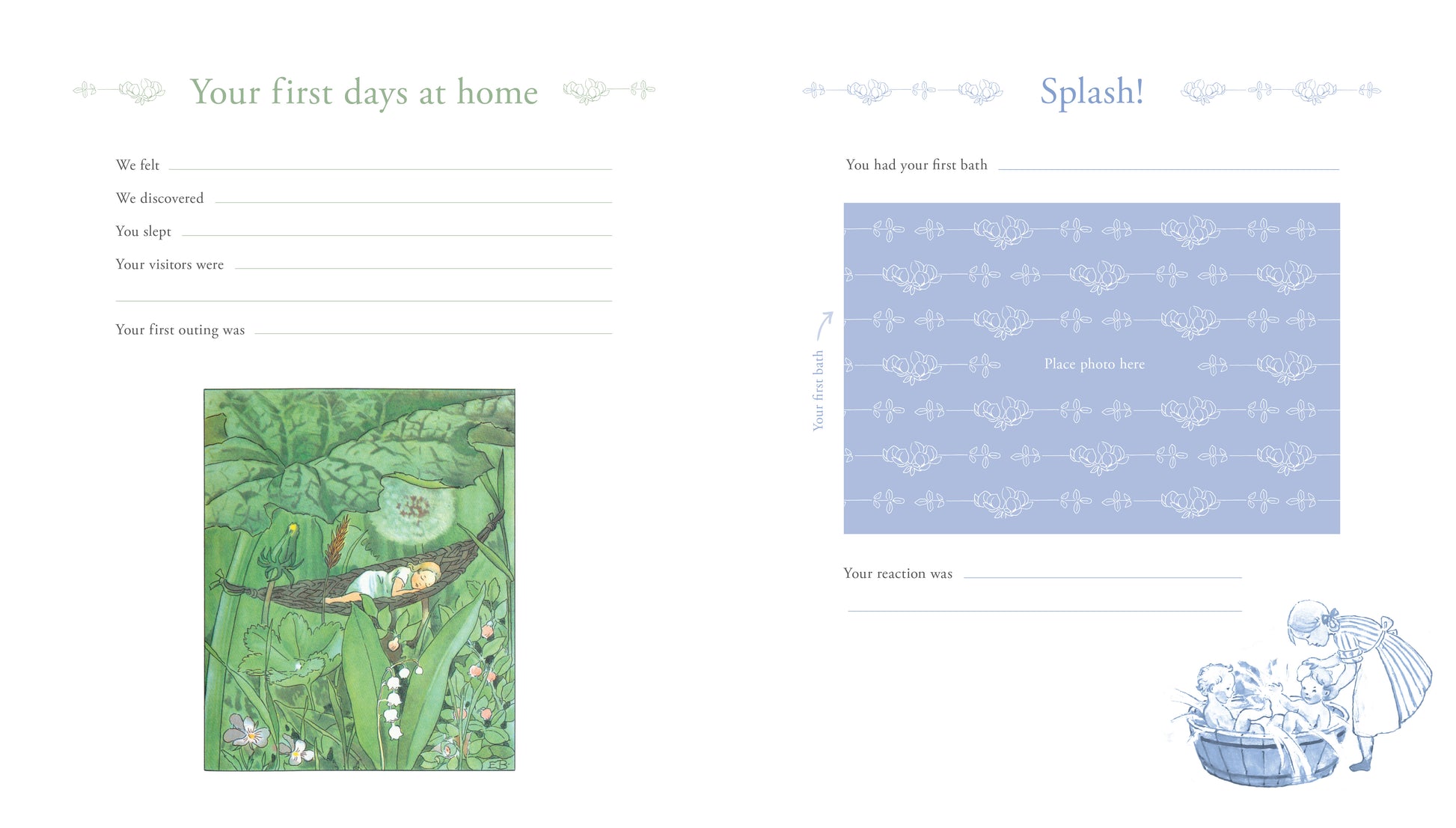 Celebrate the latest addition to the family with this beautiful baby memory and record book, illustrated throughout with vintage artwork.- This TIMELESS design features NOSTALGIC VINTAGE ILLUSTRATIONS from the picture books of Elsa Beskow, the Swedish Beatrix Potter - Record important moments from BEFORE BIRTH UNTIL 5 YEARS OLD (sections include The Happy News, Your Family, Coming Home, How You Grew, Your Hand and Footprints, Your Friends, Let's Eat, Your Day, Chatter, Travel and Celebrations) - PERFECT FOR ALL FAMILY TYPES and pregnancies with a GENDER-NEUTRAL design and universal wording - EASY TO COMPLETE, thoughtful and open prompts to help parents to record their baby's unique story in their own words - Space for OVER 30 PRECIOUS PHOTOGRAPHS to capture important moments - including coming home, first bath, first birthday and first holiday - A luxurious GOLD FOIL-STAMPED COVER and CLOTH BINDING ensure this book will look beautiful on any shelf or coffee table - A LARGE CONCERTINA STORAGE POCKET allows plenty of space to keep treasured keepsakes such as greetings cards and hospital bands - ECO-FRIENDLY product printed on high-quality sustainable paper using plant-based inks - Adorable illustrations from CLASSIC PICTURE BOOKS including Around the Year, Peter in Blueberry Land, Ollie's Ski Trip, Emily and Daisy, Children of the Forest and Woody, Hazel and Little Pip - This FUTURE FAMILY HEIRLOOM will be treasured for a lifetime